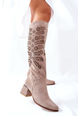 Damskie Skórzane Kozaki Lewski Cappuccino Zamszowe 2866