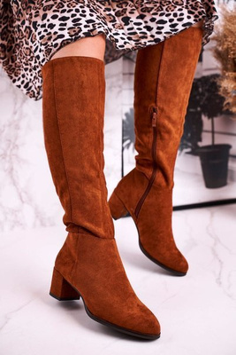 Kozaki Damskie Na Słupku Zamszowe Camel Classy