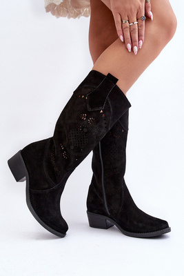Eko Zamszowe Kozaki Kowbojki Damskie Na Obcasie Czarne Jenaya