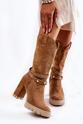 Klasyczne Zamszowe Kozaki Na Szpilce Camel Ameya