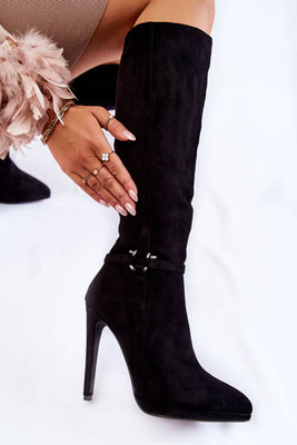 Klasyczne Zamszowe Kozaki Na Szpilce Czarne Ameya