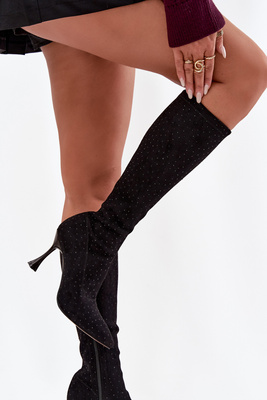 Kozaki Damskie Na Słupku Z Eko Zamszu Czarne Prisca