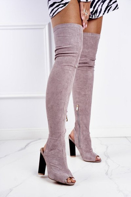 Damskie Kozaki Na Słupku Zamszowe Lu Boo Szare Aramis