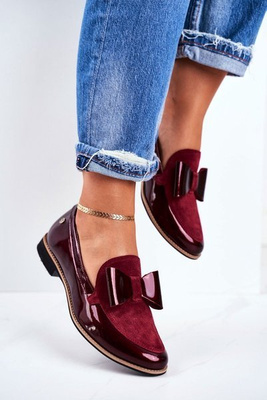 Damskie Półbuty Maciejka Lakierowane Loafery Bordowe 04099-44/00-1