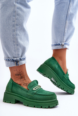Damskie Zamszowe Mokasyny Zielone Clorie