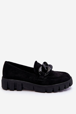 Zazoo 10141 Skórzane Mokasyny Na Platformie Z Ozdobą Złote