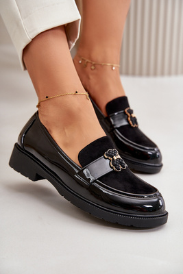 Mokasyny Damskie Lakierowane Z Misiem Czarne S.Barski HY42-339A