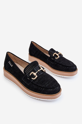 Damskie Półbuty Zamszowe Z Ozdobą Czarne Leeza