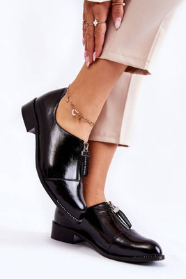 Modne Skórzane Półbuty Loafery Czarne Loveliness