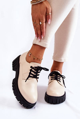 Modne Skórzane Półbuty La.Fi 210013BE-PU Beżowe