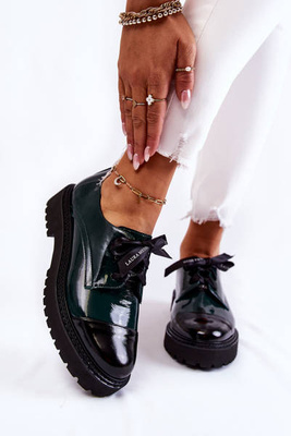 Lakierowane Półbuty Loafery Na Platformie Zielone Kjersti