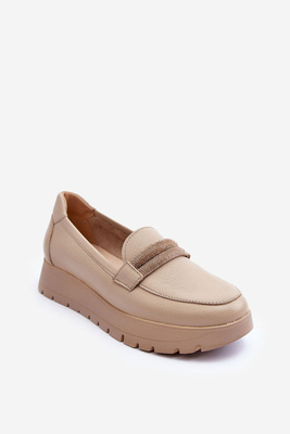 Modne Skórzane Półbuty Na Platformie Beżowe Lemar Marsol