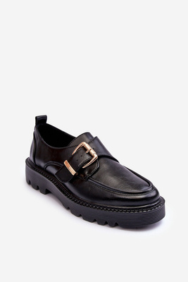 Skórzane Półbuty Na Płaskim Obcasie Z Klamrą Czarne Meara