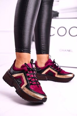 Damskie Półbuty Sneakersy Maciejka Skórzane Bordowe 04731-23