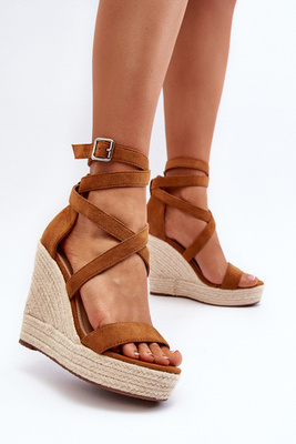 Zamszowe Sandały Espadryle Na Koturnie Z Plecionką Camel Raylin