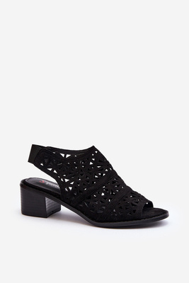 Zamszowe Klasyczne Sandałki Na Słupku Czarne Tetradi