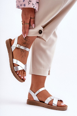 Damskie Skórzane Sandały S.Barski 97619 Srebrne