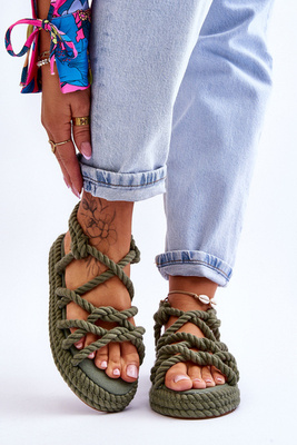 Modne Sandały Z Koralikami Zielone Terrance
