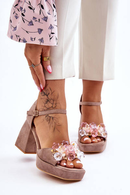 Zamszowe Sandałki Na Słupku Beżowe Spectacular