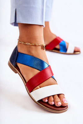 Skórzane Sandały Ze Ściągaczem Niebieskie Apulia