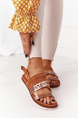 Skórzane Sandały Z Dżetami S.Barski 541-52 Brązowe