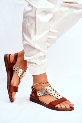 Sandały Damskie Płaskie Sergio Leone Brązowe SK035
