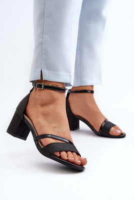Sandały Damskie Na Słupku Z Ozdobnym Paskiem Eko Skóra Czarne Triavera