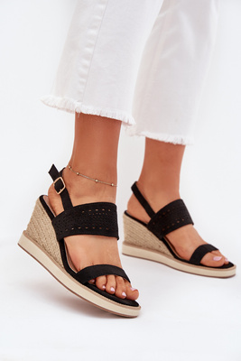 Sandały Damskie Ażurowe Na Koturnie Z Plecionką Czarne Zolira