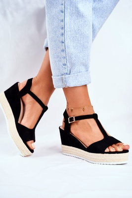 Sandałki Damskie Na Koturnie Czarne Beautiful Way