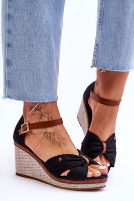 Sandały Na Koturnie Z Paseczkami Granatowe Ellen
