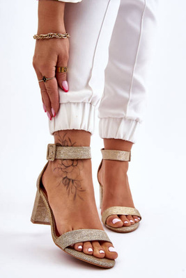Sandały Damskie Na Słupku Brokat Złote Joalice