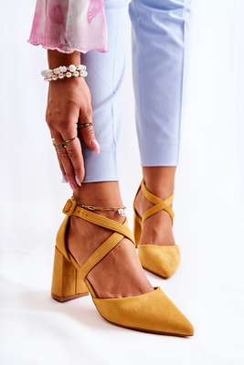 Skórzane Sandały Na Złotym Obcasie Laura Messi 2143 Ciemnożółte