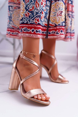 Sandały Damskie Na Obcasie Platformie Złote Ellania
