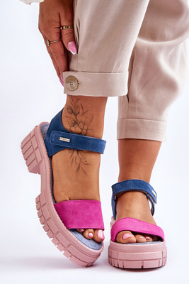 Damskie Zamszowe Sandały Big Star LL276034 Niebiesko-Różowe