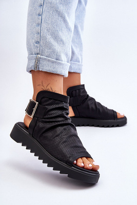 Damskie Sandały Z Cholewką Za Kostkę Czarne Adonis