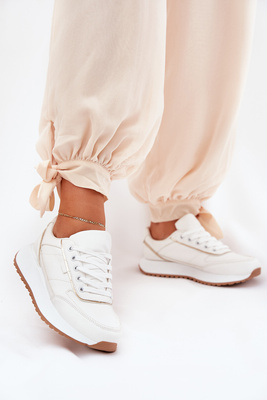 Sneakersy Damskie Na Platformie Z Eko Skóry Beżowo-Białe Ediriella