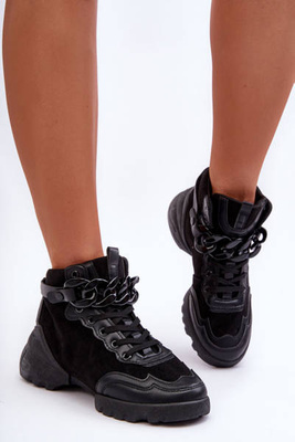 Buty Sportowe Damskie Zamszowe Z Łańcuchem Czarne Tymagio