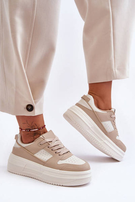 Damskie Buty Sportowe Sznurowane Na Platformie Beżowe Minea