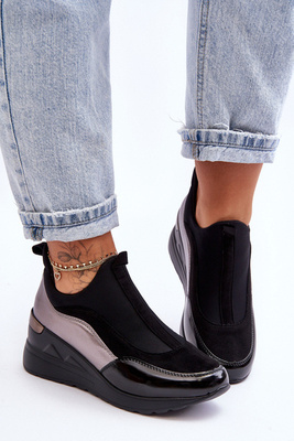 Damskie Wsuwane Buty Sportowe Na Koturnie Czarno-Srebrne Farro