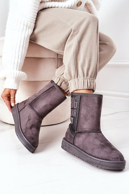 Damskie Szare Ocieplane Botki Śniegowce Zamsz Biggy