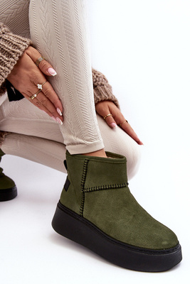 Damskie Zamszowe Śniegowce Maciejka 06257-24 Oliwkowe