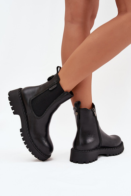 Skórzane Botki Sztyblety Damskie Ocieplane Na Zamek Big Star OO274109 Czarne