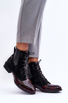 Klasyczne Skórzane Botki Sznurowane Maciejka 05667-01 Czarne