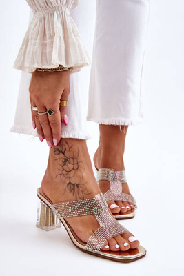 Klapki Na Obcasie Z Dżetami Złote Jaxen