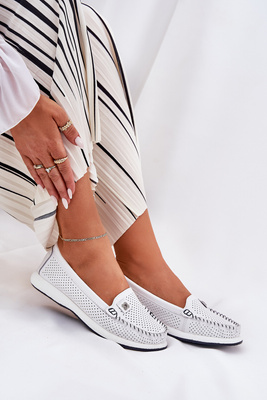 Płaskie Skórzane Mokasyny Z Ozdobą S.Barski LR51-547 Białe