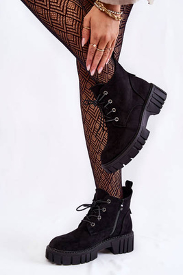 Zamszowe Ocieplane Botki Sznurowane Czarne Bjorg