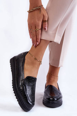 Lakierowane Mokasyny Krokodyli Wzór Na Platformie Czarne Diane