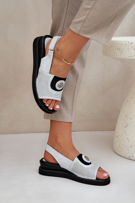 Skórzane Damskie Sandały Na Koturnie Artiker 52C0483 Białe