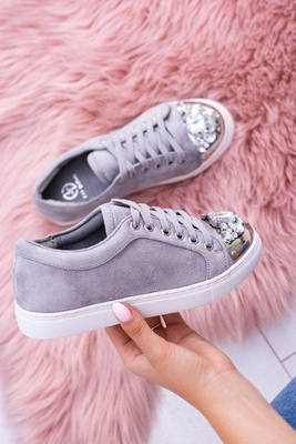 Lu Boo Szare Trampki z Błyszczącymi Kryształami