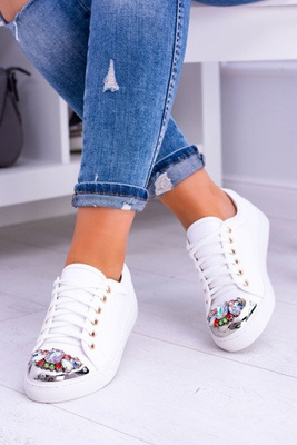 Lu Boo Białe Trampki z Błyszczącymi Kryształami